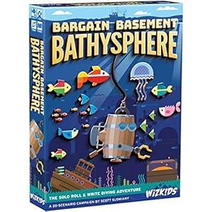 If you’ve ever seen a statement like this one on social media, always accompanied by the hashtag #bbbathysphere, chances are good you’re already familiar with Scott Slomiany’s Bargain Basement Bathysphere. This solo roll-and-write campaign game about piloting a ramshackle submersible made waves when it was first released in 2018 as an entry for BoardGameGeek’s solitaire print-and-play contest. Buoyed by its light campaign/legacy elements and a clever social media marketing scheme that gave players an in-game boost for publicly posting their ship’s name, Bargain Basement Bathysphere spanned two dozen individual scenarios and a whopping 60 pages that needed printing. That’s a bit much for your average gamer (and even me) so when WizKids announced in early 2022 that they would be releasing a physical version of Bargain Basement Bathysphere it felt like a great opportunity for the game’s wry, absurd humor and accessible gameplay to reach a wider audience.
